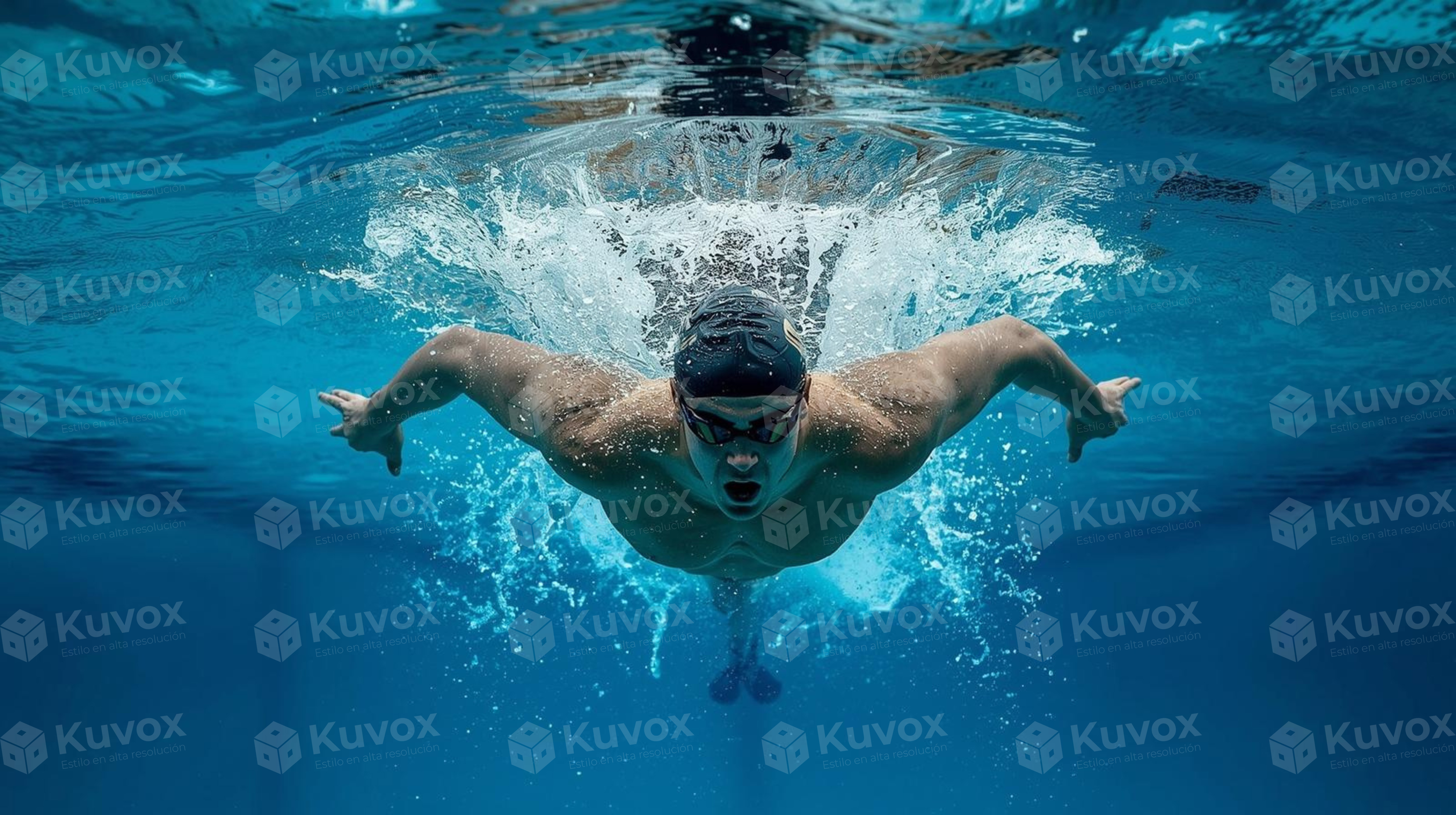 Underwater photography of a swimmer in full movement. Precision, fluidity and energy merge in this aquatic shot.