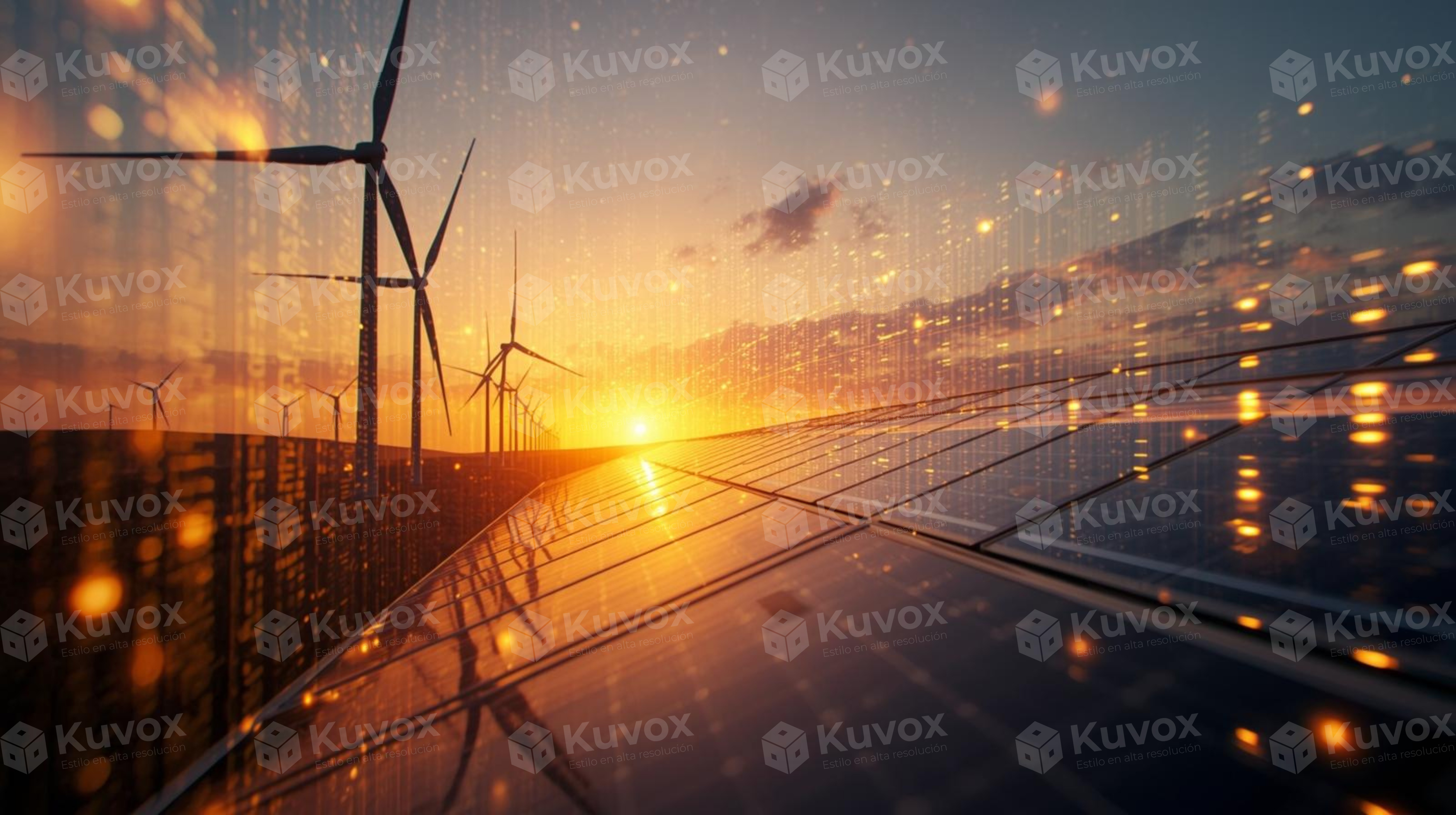 Turbinas eólicas girando bajo el atardecer, reflejando energía limpia y sostenibilidad empresarial.