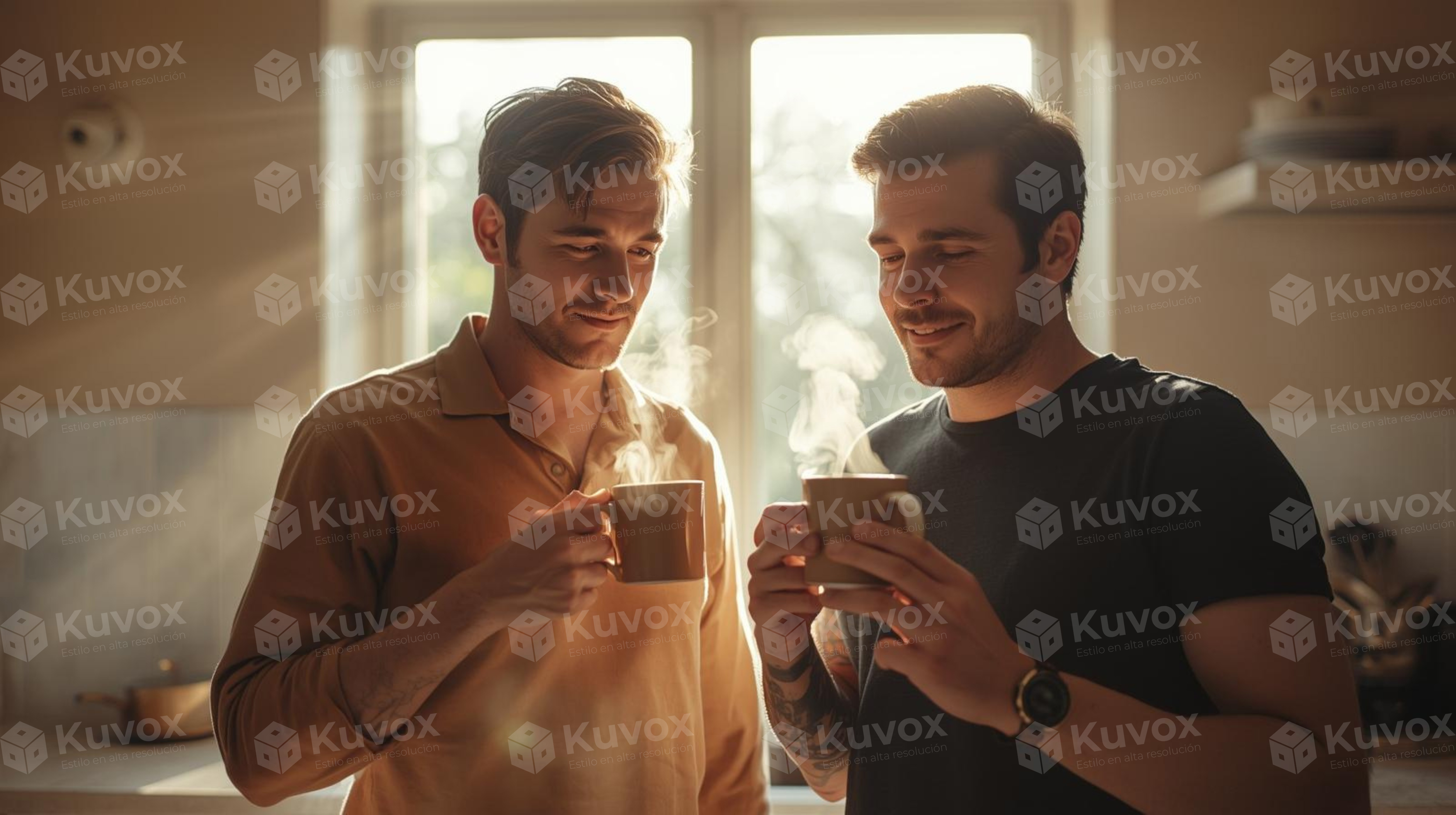 Dos personas conversan mientras disfrutan de un café. Una imagen cálida que refleja cercanía y simplicidad cotidiana.
